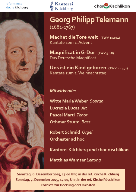 Samstag (!) 6. Dezember in der Kirche Kilchberg 17.00 Uhr